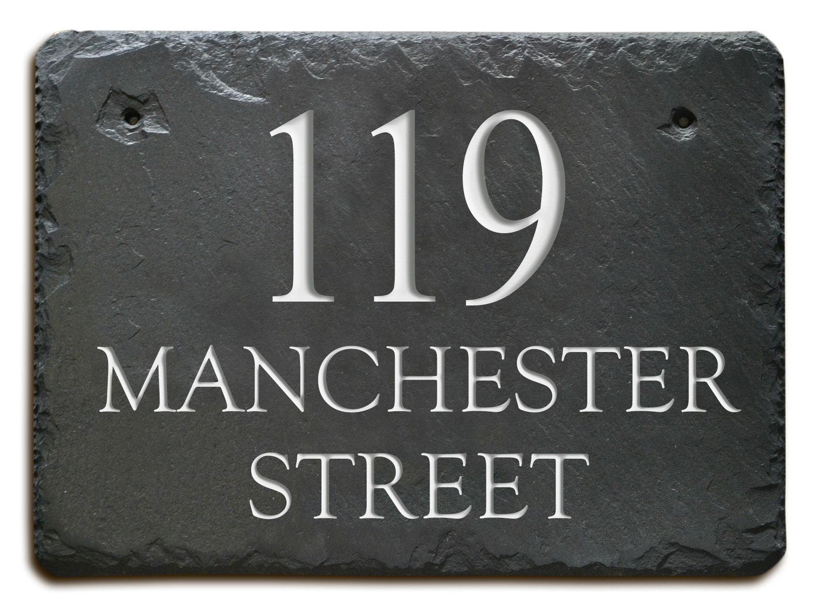 CARVED BLACK SLATE ADDRESS PLAQUE