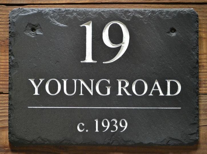 CARVED BLACK SLATE ADDRESS PLAQUE ~Your choice of 2 lines of House Numbers & text ~Black Slate with White or Gold numbers. ~SIZE : 8" x 11" or 10" x 14" Please leave the "Carve" information at "Checkout" under NOTES to SLATE MASON